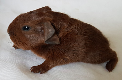 Min røde hun Niffer's Indiya har født sit kuld ved 9.30-tiden... det blev 3 røde drenge og en rød satinpige, der desværre senere døde med tarmfremfald. Mulighed for californians.